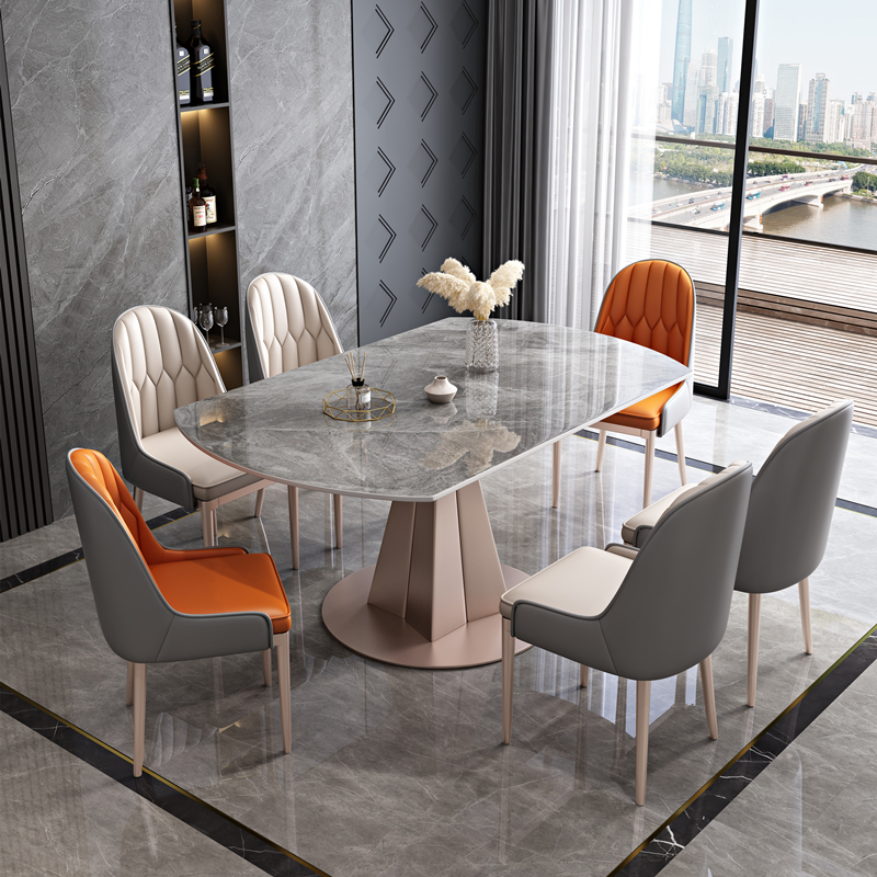 青木川 简约现代餐桌六人十人意式亮光岩板餐桌轻奢餐桌椅组合家用小户型一米五可伸缩折叠圆桌长方形饭桌子皮质金属家具 一桌6椅【1.2米长】 岩板纹理备注