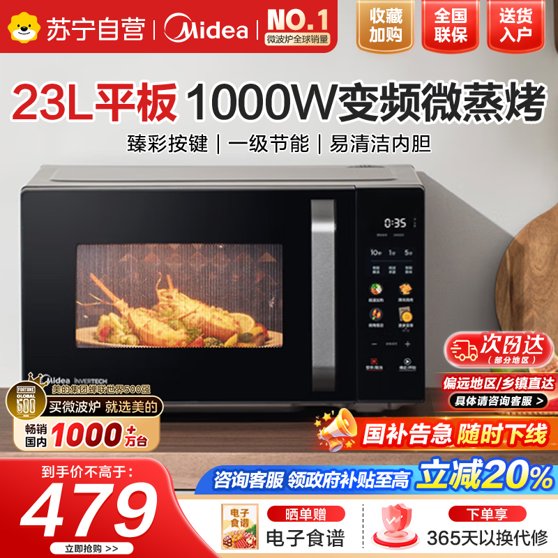 美的[微碳系列]微波炉烤箱一体机800W变频微波23升一级能效双烤模式图文双显微晶大平板C30[M8(S0)同款]