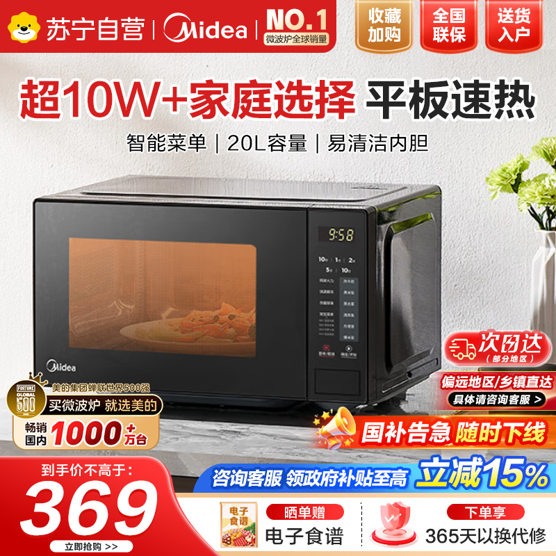 美的(Midea)家用微波炉光波烤箱微烤一体机平板加热多功能智能杀菌饭盒蒸菜单C20 (201B升级款)DG(B0)同款